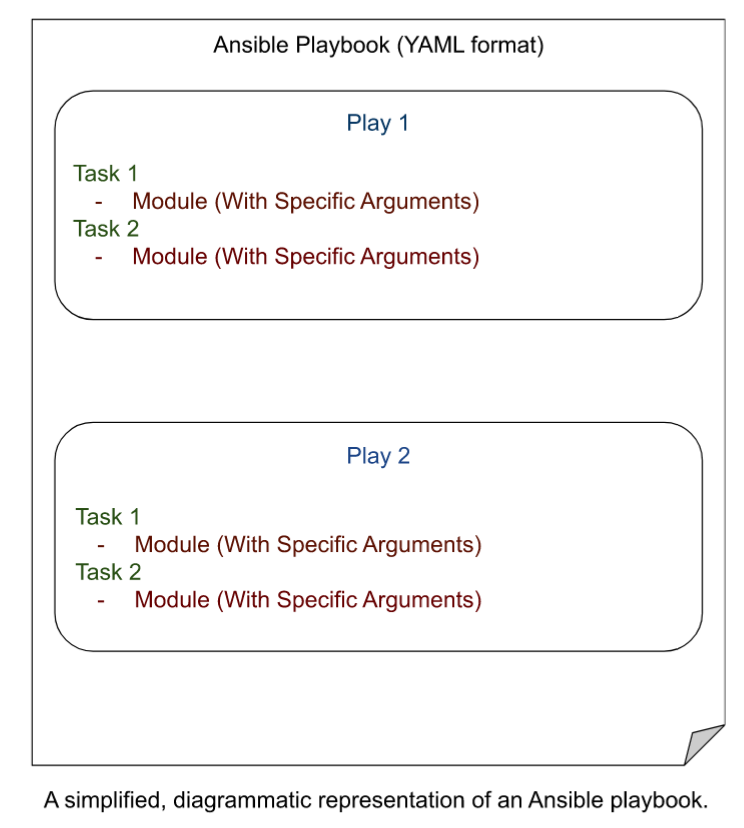 Playbooks are automation blueprints, in the YAML format. Playbooks contain plays, which are a list of tasks that map to each managed node in the predefined inventory.