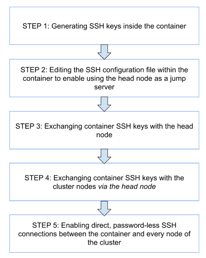 This made the docker container trusted by the head node, so when SSH’ing into the head node, there is no need for a password.