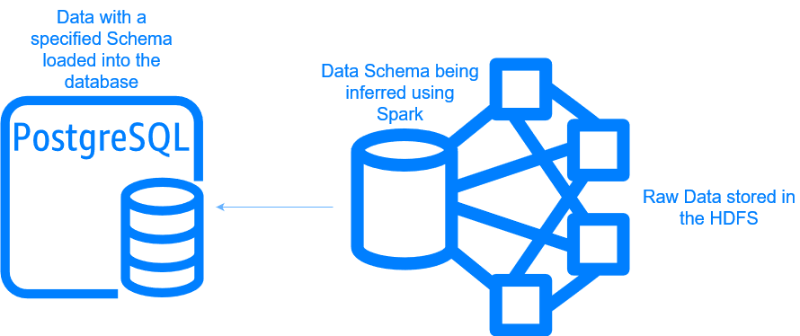 Once this data has it’s schema specified, connecting a HDFS to a PostgreSQL database allows for the rapid, trivial loading of data into database tables.